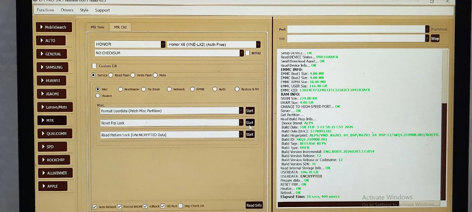 Honor X6 VNE-LX2 β Reset FRP MTK New π― EFT Pro π
