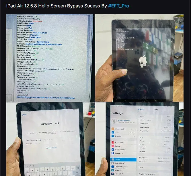 iPad Air iOS 12.5.8 ✅ Bypass iCloud MEID No Signal Up 14.8 💯 EFT Pro 👑