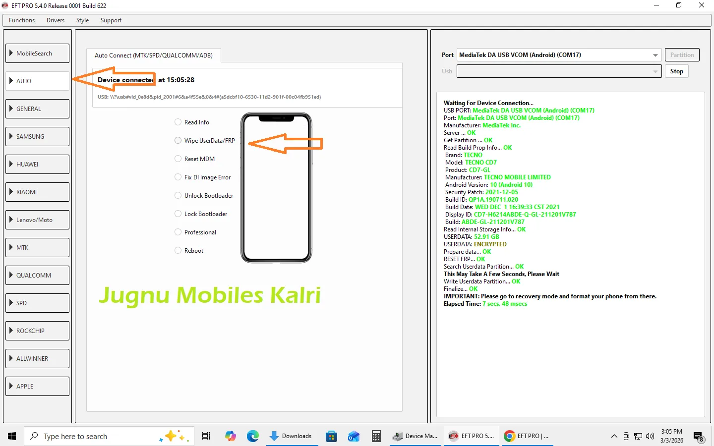 Tecno Common 15 cd7 frp & format with EFT pro