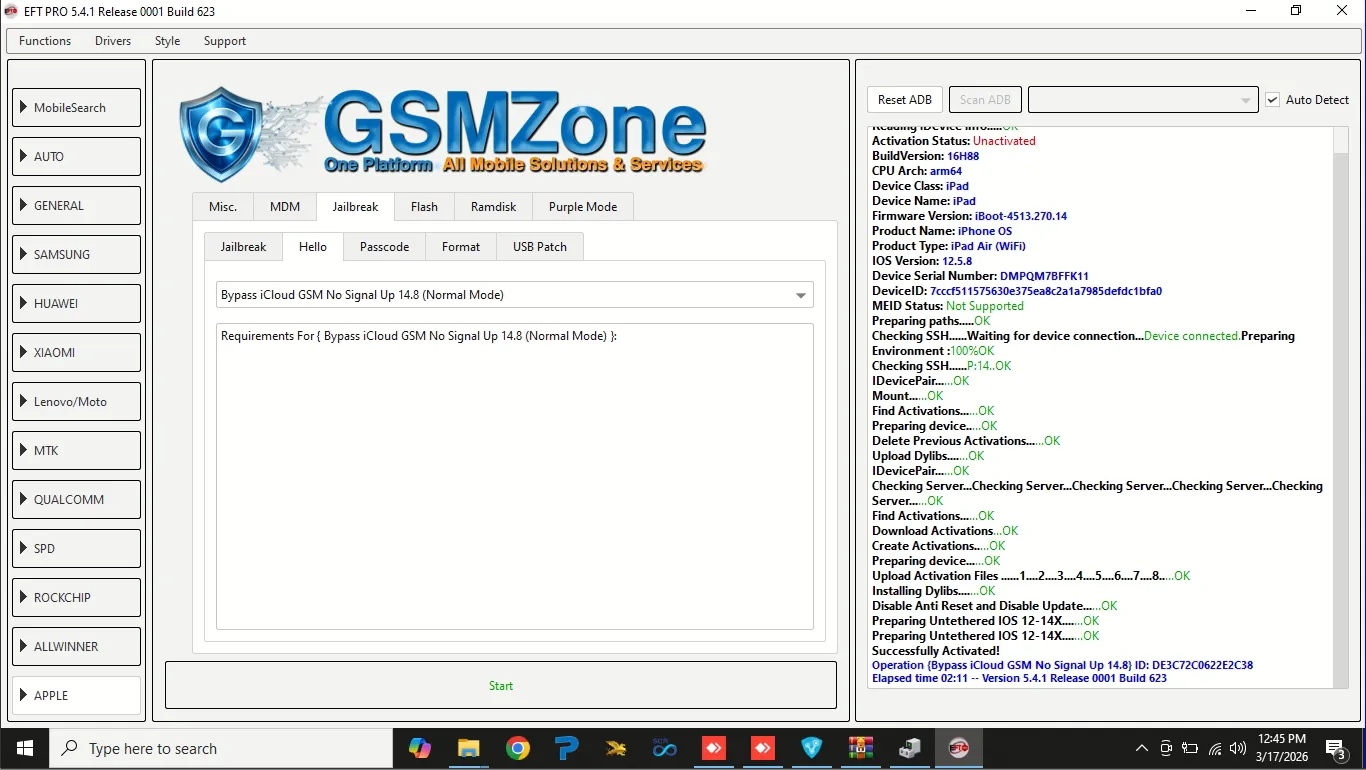 iPad Air Bypass done with jailbreak EFTPRO Dongle