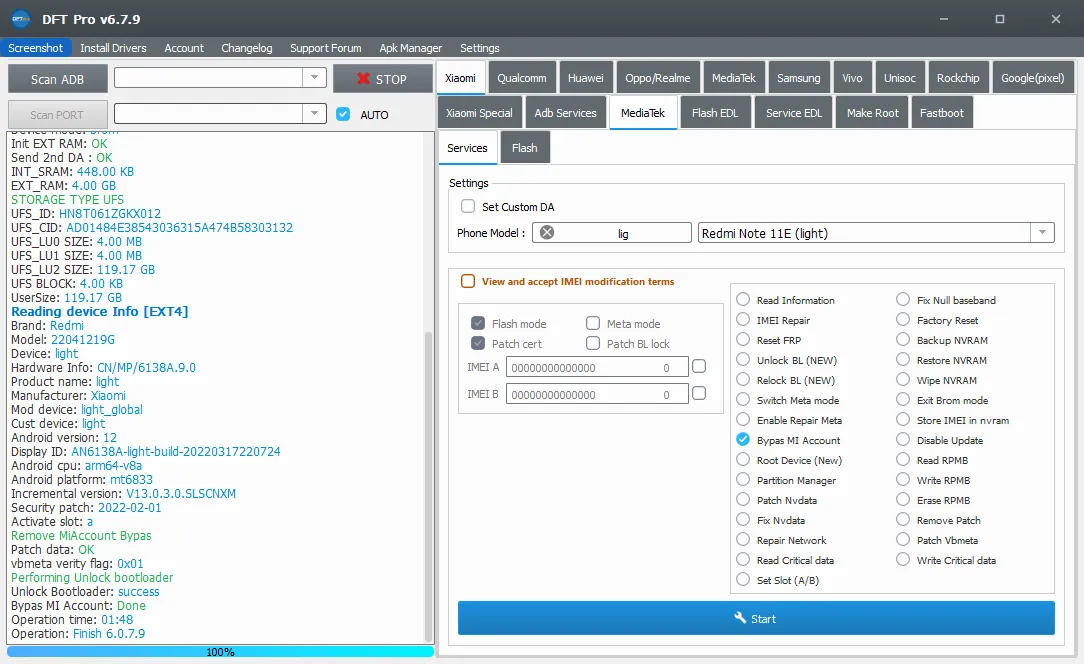 Bypass mi Account Redmi note 11E Done with DFT PRO šš