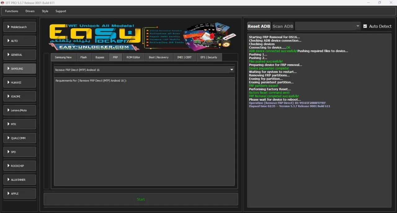 Samsung Galaxy A16 SM-A165F ✅ Remove FRP Direct (MTP) Android 16 💯 EFT Pro 👑