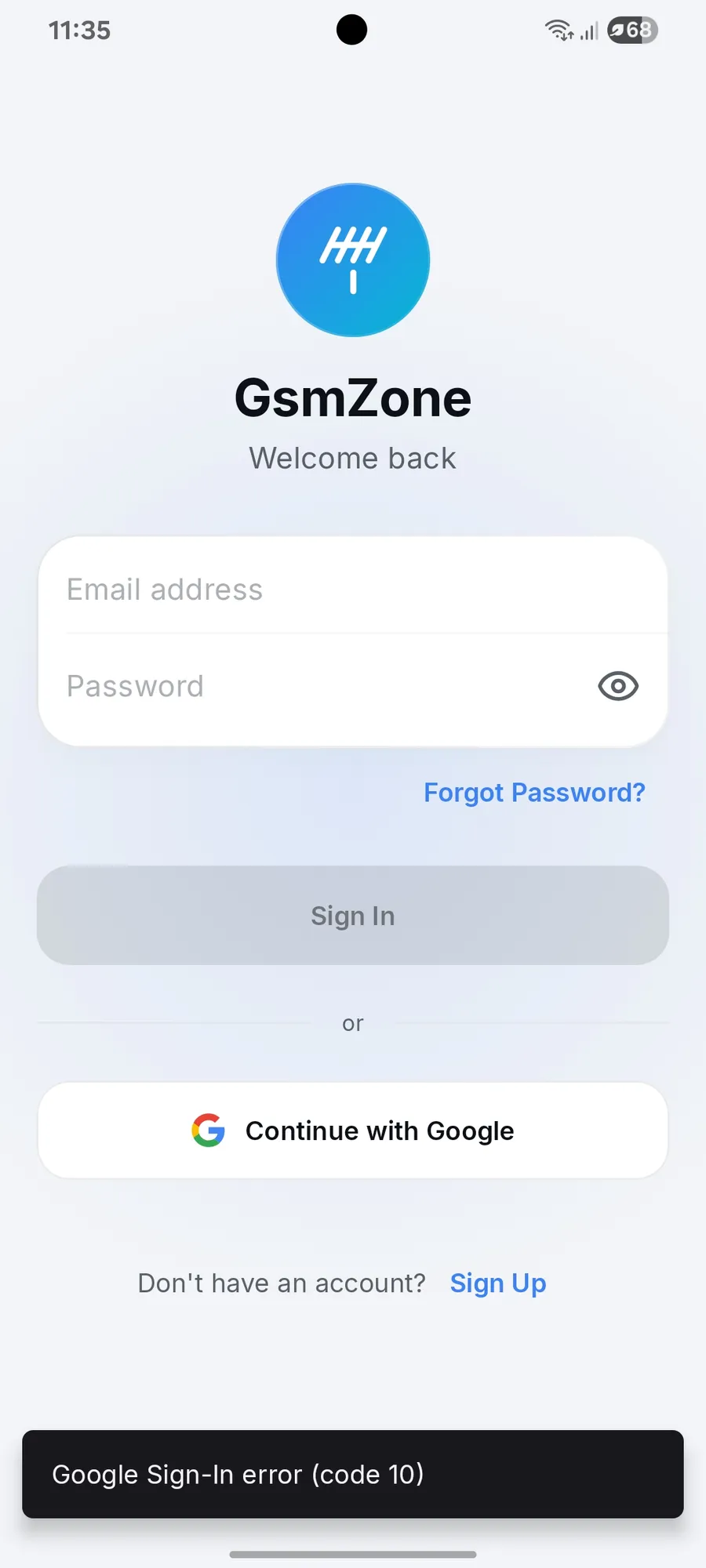 App have bug sign in error google account