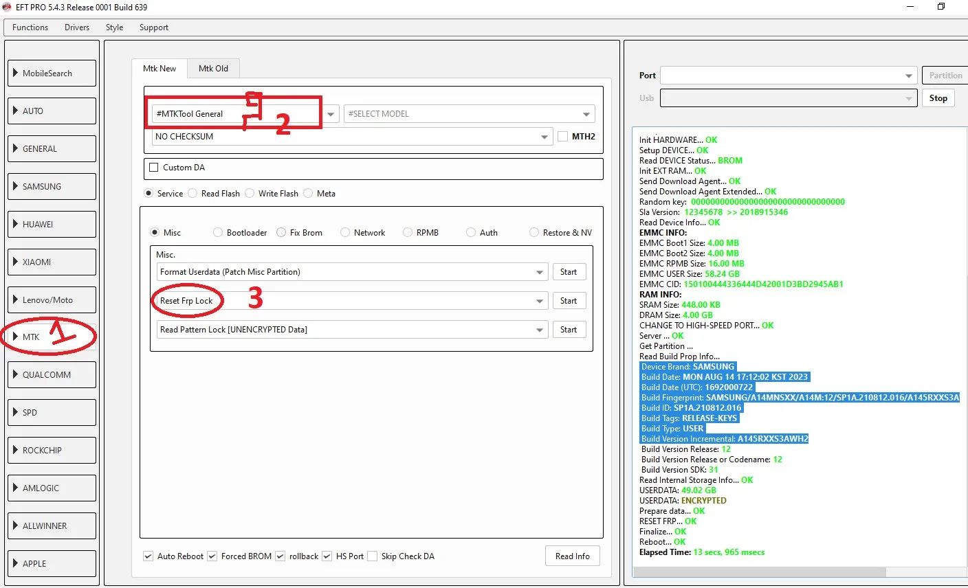 Samsung A14 (SM-A145R) Android 13 - S3 FRP Done ! MKT Tab >> Mtk New >> #MTKTool General >> Reset Frp Lock .