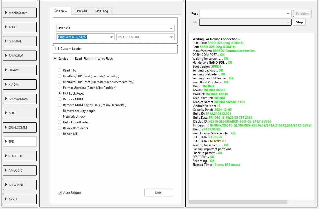 USB PORT: SPRD U2S Diag (COM16)