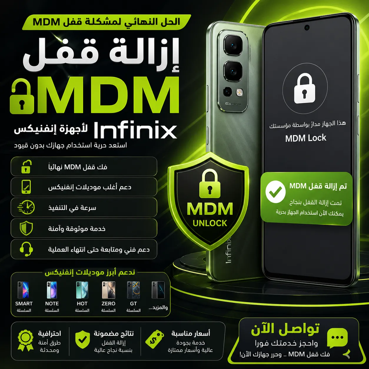 نوفر لك الآن خدمة إزالة قفل MDM لأجهزة إنفنيكس بأحدث الطرق وأكثرها أمانًا.