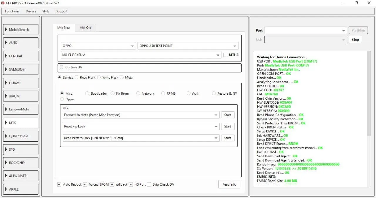OPPO A58 (CPH2577) ✅ Android 15 ✅ Reset FRP TestPoint 💯 EFT Pro 👑
