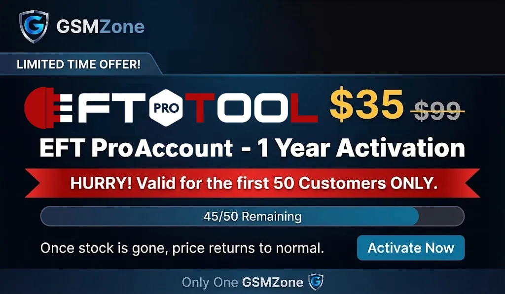 EFT Pro Account - 1 Year Activation 35$ (Limited Stock) Hurry! Valid for the first 50 customers ONLY. Once the stock is gone, the price will return to normal. https://www.gsmzone.com/post/334