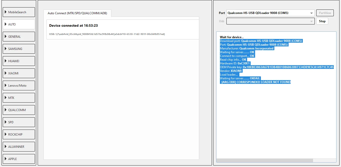Download port: Qualcomm HS-USB QDLoader 9008 (COM5)