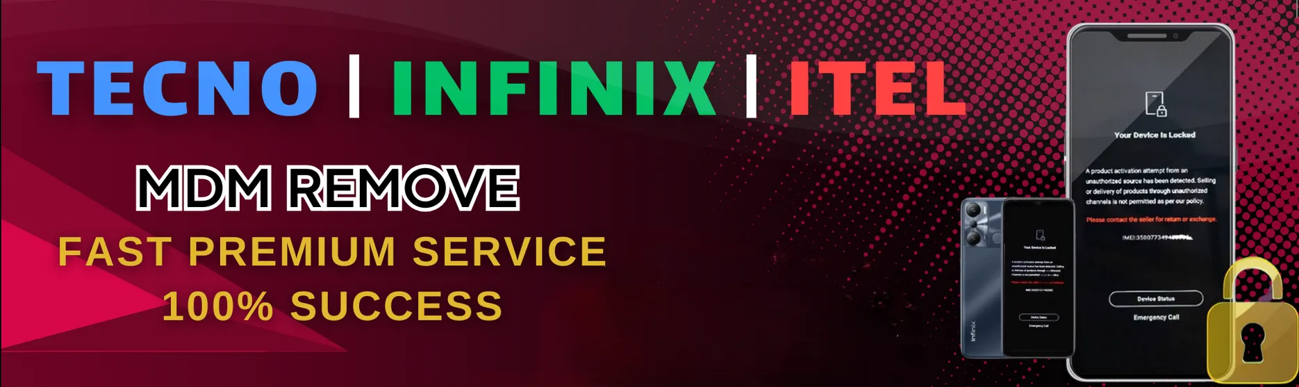 TECNO, INFINIX MDM UNLOCK Official BY IMEI +Lock Pic {Unlock 100%✅} 1-72 Hours(No Refund For IMEI/SN Changed Due to Security Damage)